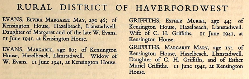 This area had suffered badly from the economic depression of the 1920s and 30s, but, in the tradition of ill winds everywhere, the war brought a brief period of full employment to the citizens of Neyland with many, both men and women, finding work at the Royal Naval Armaments Depot which was constructed on waterside land near Newton Noyes, on the outskirts of Milford town. Servicemen from all parts of the British Empire and the USA descended on Pembrokeshire and brought a cosmopolitan feel to the dancehalls of the otherwise parochial towns of Neyland and Pembroke Dock. While the latter was the regular target for German bombing, with many fatalities, Neyland was generally lucky in this respect, with a few bombs falling on open fields. There was one tragic exception: on 11th June 1941, a stray land mine landed on a house in Hazelbeach, killing four women: two mothers and their daughters, Margaret and Elvira Evans, and Esther and Margaret Griffiths, who were all sheltering inside. Their names appear on the Neyland War Memorial.