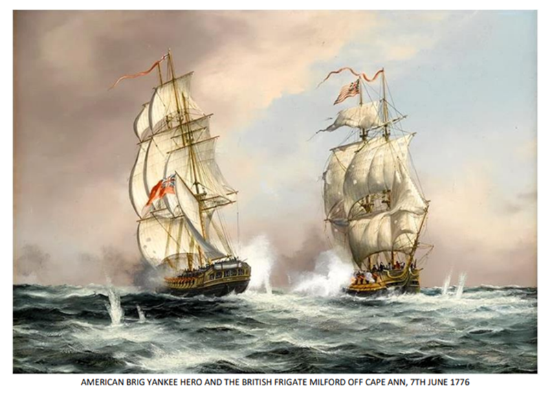 This painting shows the Frigate HMS Milford (built in Neyland) in action off Cape Ann on 7th June 1776.